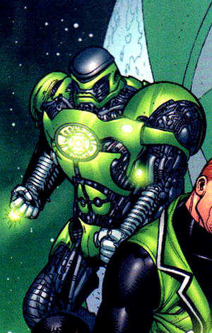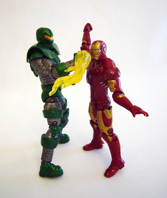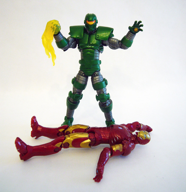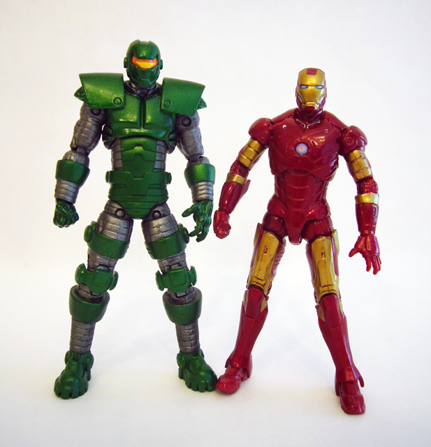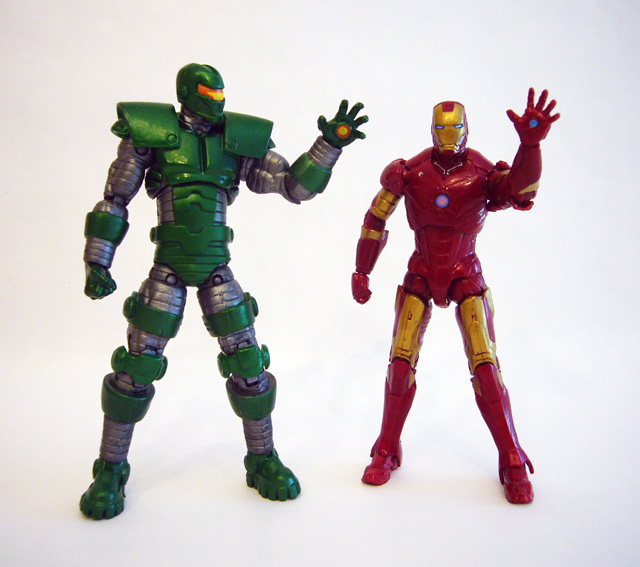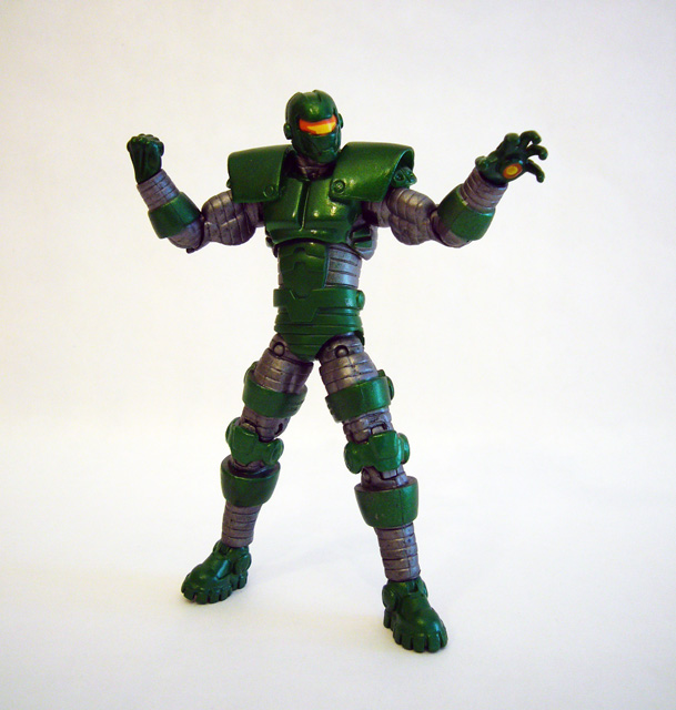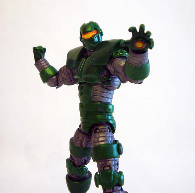 When it comes to 3 ¾ inch scale figures, I'm pretty equal opportunity. On my shelves you'll find Captain America next to Batman, and Indiana Jones by Hellboy. And that brings me to the final reason why I was so excited to get my hands on Titanium Man. The figure bears a striking resemblance to another comic book character, the current version of DC's Green Lantern Stel! Since the chances of Stel getting a figure are pretty remote, Titanium Man will fill in the GL ranks perfectly... once I get enough courage to paint the appropriate symbol on his chest. :-)