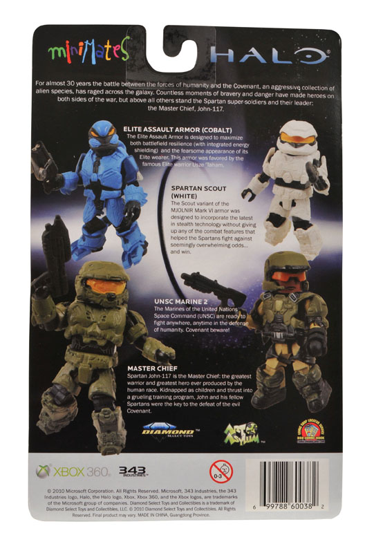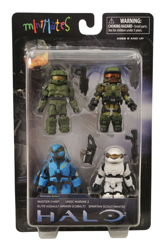 Earlier this week we showed you the upcoming Toys R Us exclusive HALO Reach Minimates 2-packs (see the story here). Well, there's even more HALO goodness on the way! Next up is a HALO Minimates 4-pack that you'll find in specialty shops with Master Chief, UNSC Marine 2, Elite Assault Armor (Cobalt), and Spartan Scout (White).