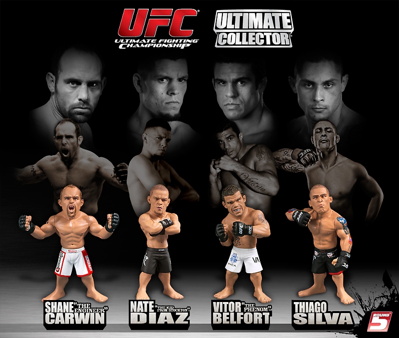 Four increasingly popular UFC stars will be the next to be featured as collectibles as Round 5 announces that Vitor Belfort, Shane Carwin, Nate Diaz and Thiago Silva will comprise Ultimate Collector Series 5, scheduled to be available at retail in early 2011.
