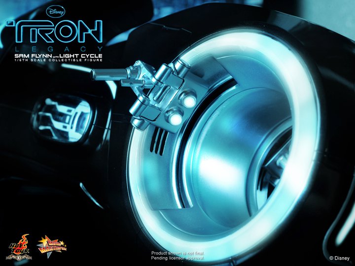 Hot Toys reveals their first 1/6th scale action figure from the upcoming Disney movie TRON: Legacy: Sam Flynn with Light Cycle.