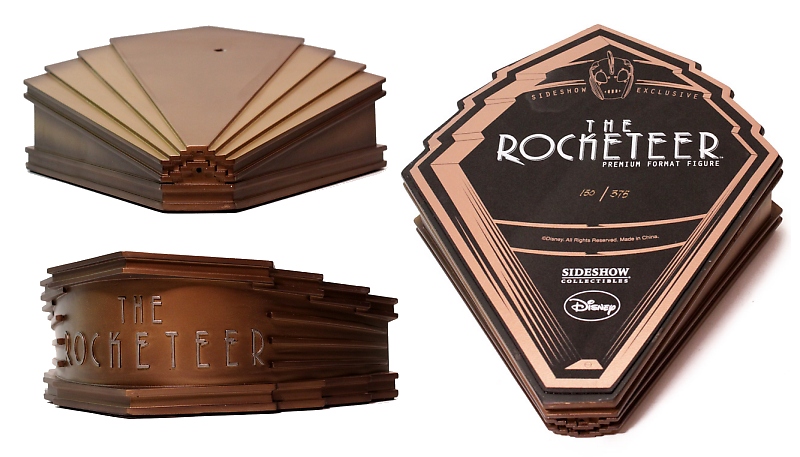 The packaging is a large heavy duty box with great artwork and photography gracing the sides. There’s some text on the back about the character and the qualities of the statue and the edition number on the very bottom. Inside the box is an enormous slab of Styrofoam, cut in the middle and taped together. Like many statues nowadays, you’ll have to put the Rocketeer together but it isn’t hard.