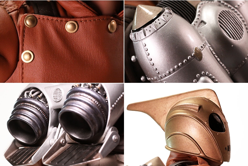 The fabric outfit for the Rocketeer is exquisitely executed and just a real marvel to behold. Using fabric articles of clothing, the Rocketeer really springs to life on your table or display. The wrinkles never look out of place either. It’s just an outstanding figure.