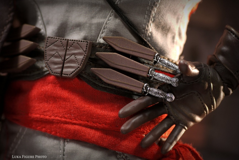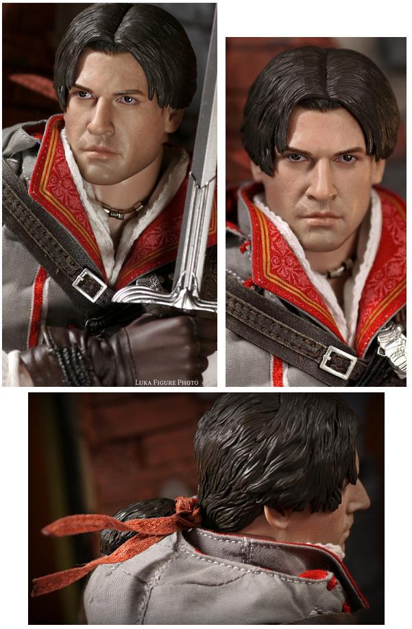 Based on the look of the character from the beginning of his saga, this younger Ezio features all of the minute details seen in the fan-favorite game, including the baby smooth face, parted hair, pony tail, and scar on his lip (above). Overall, this is one of the most accurate and impressive 1/6th scale figures based on a video game figure ever.
