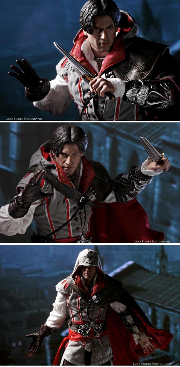 Now, thanks to Hot Toys and their line of Video Game Masterpiece 1/6th figures, fans of Assassin's Creed II can pick up Ezio in alll his beautifully crafted and highly detailed 1/6th scale glory.