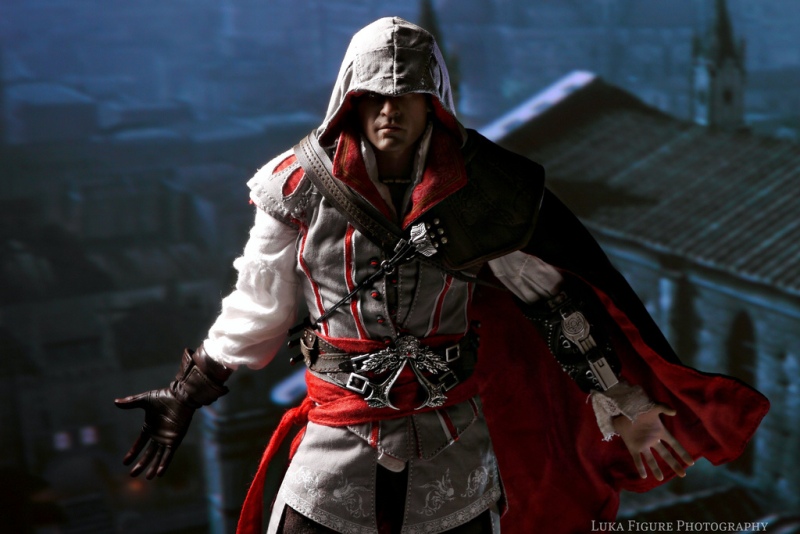 Priced at $150, fans of Assassin's Creed II won't want to miss Hot Toys' Ezio figure. With one of the finest and most detailed 1/6th scale outfits ever, plenty of articulation, and impressive accessories which compliment the figure perfectly, Hot Toys' Video Game Masterpiece Assassin's Creed II: Ezio makes for a great figure for any gamer.