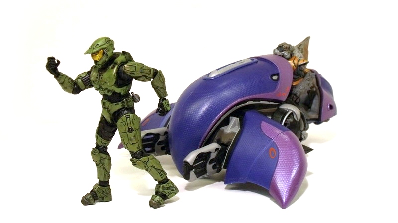 Halo fans have been hounding McFarlane Toys to make some scaled vehicles since their action figure series debuted several years ago. Many collectors dreamed big, desiring a UNSC Scorpion tank or Pelican dropship, but let's be realistic here folks: a coffee table-sized vehicle isn't going to fly in today's market. So what about some of the smaller craft more commonly seen (and used) in the game? McFarlane tested the waters in 2009 by releasing the Mongoose, an all-terrain cycle packed with an exclusive figure to ride it. Priced at under $20, the four-wheeler was a hit with fans.