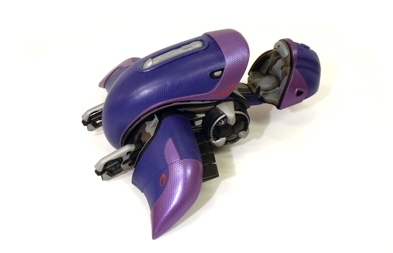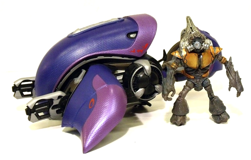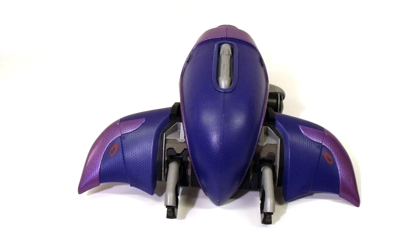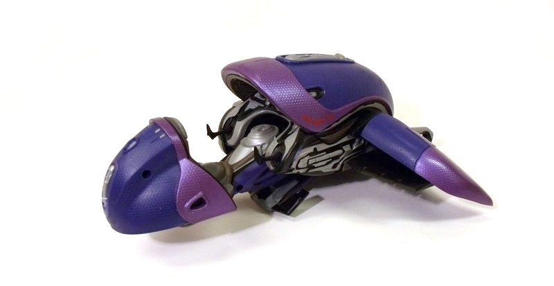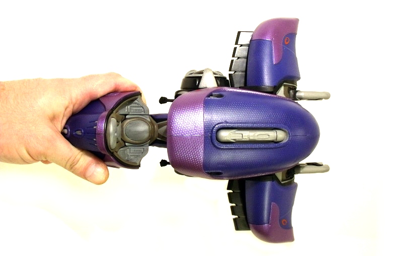 SCULPT: Sculpt-wise, McFarlane's team has captured the look of the new Halo: Reach Ghost flawlessly. Measuring 10 inches long (from the tip of its cannons) and nearly 9 inches wide from wingtip to wingtip, the Ghost amazes with smooth, curvy alien design. "Smooth" really isn't the right word as the entire ship's surface is actually textured with a subtle honeycomb-like pattern. It's a cool effect, adding a nice layer of realism. McFarlane has made a name for itself as a respected authority in toy sculpting. The Ghost continues that fine tradition.