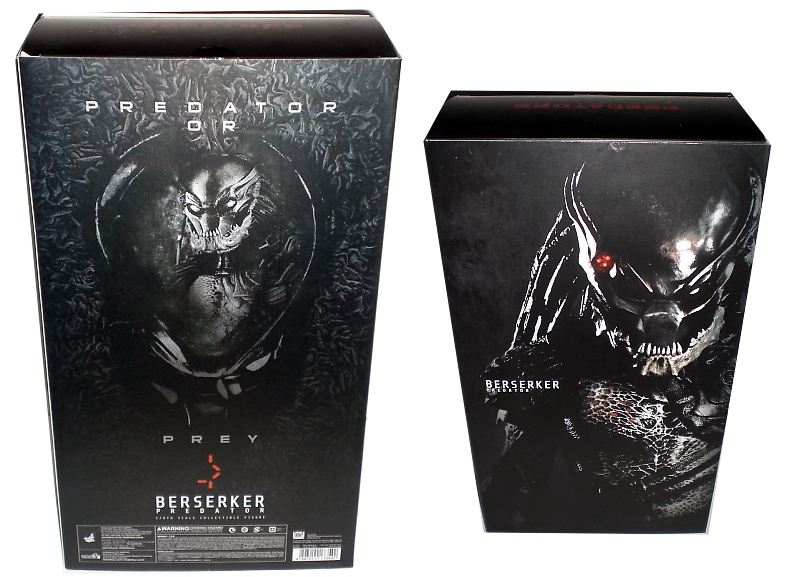 The Berserker Predator is housed inside the same tall rectangular box that features an opening lid. The box also feature a removable black cardboard sleeve that features an angular die cut design with a crimson red transparent film which reveals the figure portrait from the inner box front art. The interior box features a close-up image of the Berserker Predator figure and the back features an image of his bio-helmet in the film. The interior of the front box flap feature a full frontal image of the menacingly powerful Berserker figure.