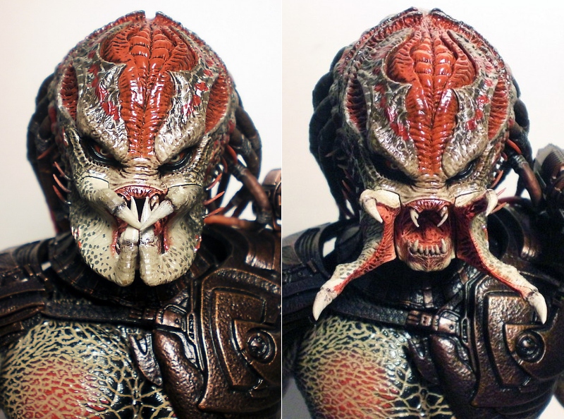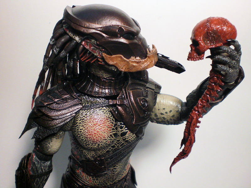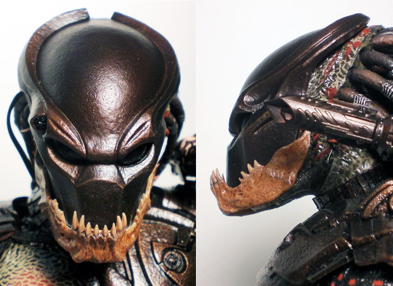 PAINT: The Berserker Predator’s exceptionally detailed sculpt is equally matched by an amazing paint job consisting of a vivid clash of dark tones and vividly bright colors. The armor pieces on the Berserker have a realistic weathered bronze look resulting in an amazingly cool clash of colors on the figure. The complexity of the Berserker’s head sculpt is immaculately decorated with a vast palette of colors which truly brings the piece to life.