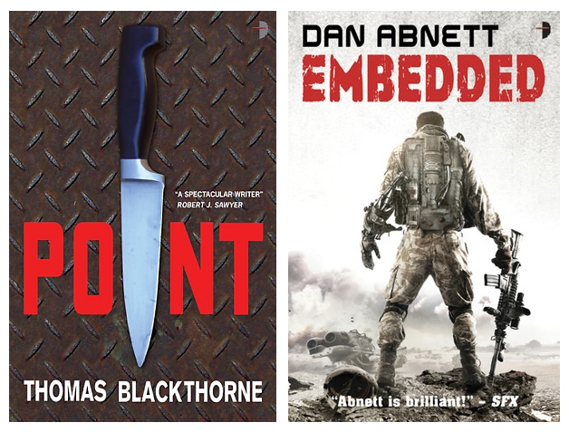 Angry Robot Books continues to put out some of the best sci-fi, fantasy and horror and this month, two new instant favorites are available: Thomas Blackthorne's Point and Dan Abnett's Embedded.