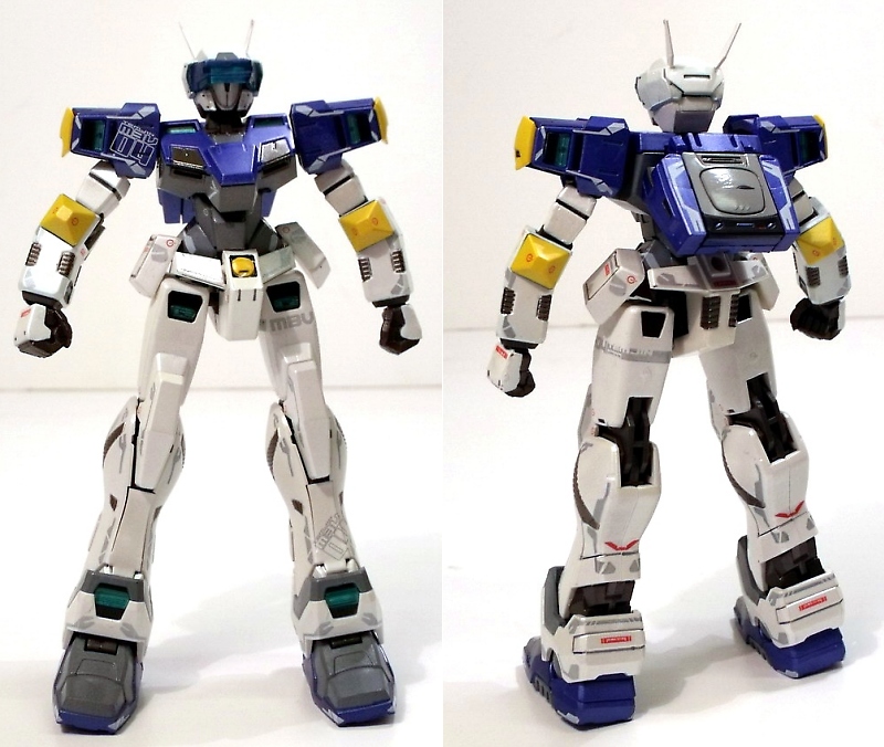 The Temjin is the best known Virtual On mech design; the "poster 'bot" for the series, if you'll pardon my punny metaphor. The mech, called a Virtuaroid, or VR for short, is very humanoid in appearance featuring a vibrant white, blue and yellow color scheme. The design is very reminiscent of a Gundam, no doubt due to Mr. Katoki's involvement on both properties. While Gundam-ish looking, the Temjin does hold his own with several unique design features.