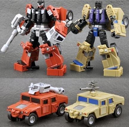 FansProject, a third-party Transformers manufacturer, is releasing a re-issue of their custom Munitioner and Explorer with a new paint job and deco as part of a new series called Causality: Crossfire Side Story. Just now added for pre-order at BigBadToyStore.com, these include (click to pre-order): Warcry and Flameblast. Both 'bots are slated to arrive this April priced at $44.99 each.