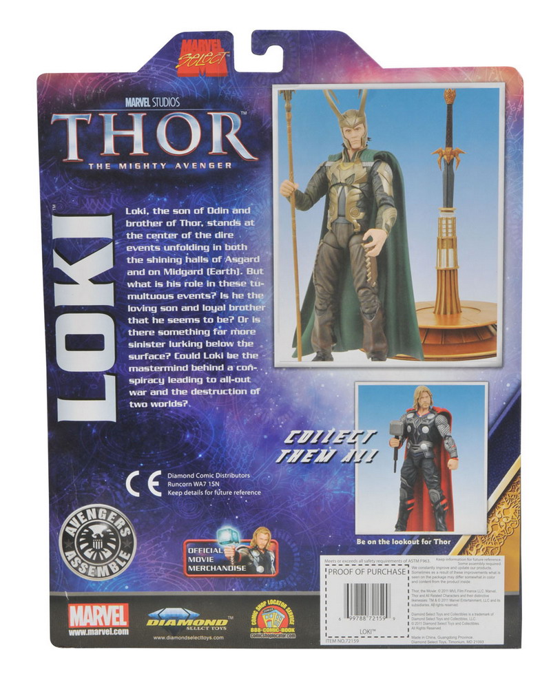 Diamond Select Toys provides a packaged look at their upcoming Marvel Select Thor action figures. Shipping later this month in time for the motion picture release May 6th, this assortment includes Thor (as portrayed by Chris Hemsworth) and Loki (played by Tom Hiddleston). As an added bonus, each figure comes packaged with a display stand based on the mythical rainbow bridge that can be combined to form a diorama.