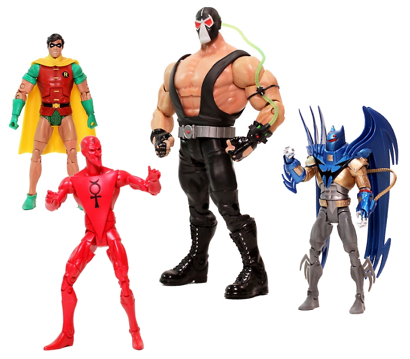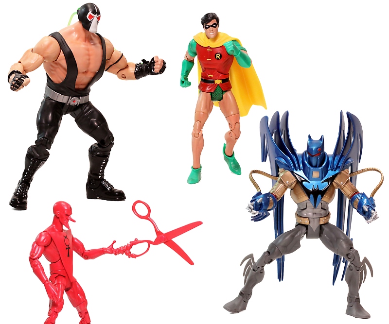Azrael Batman has double knees and wrists while everything else is standard. Bane is actually the most standard of this batch, but that’s perfectly fine too.