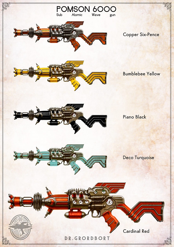 WETA announces their latest and greatest addition to Dr. Grordbort's Raygun arsenal: THE POMSON 6000 SUB ATOMIC WAVE GUN. This elite made-to-order weapon is described as: