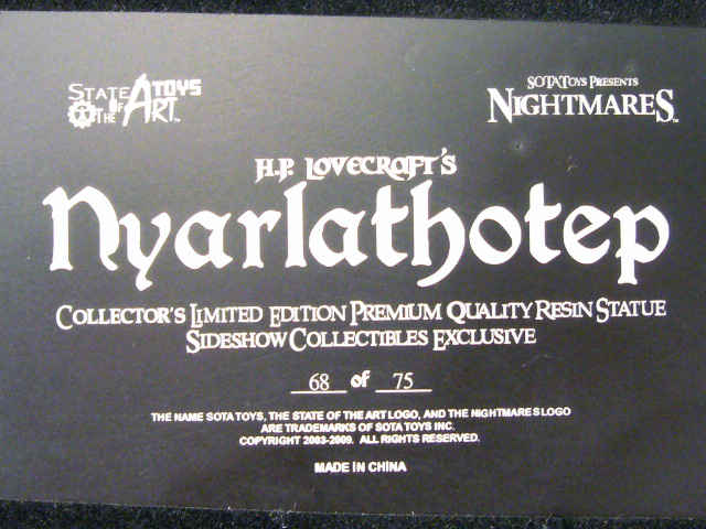 SOTA Toys embarked on their “Nightmares” statue line in 2008 with the Great Old One himself, Cthulhu. That initial release started a trend of incredible highly detailed statues based on Lovecraft’s entities that included multiple exclusive versions. In 2009 came the next Nightmare, Nyarlathotep in his Crawling Chaos form. A massive high-quality resin statue, the alien god is truly one of a kind with a look never before achieved in three dimensions.