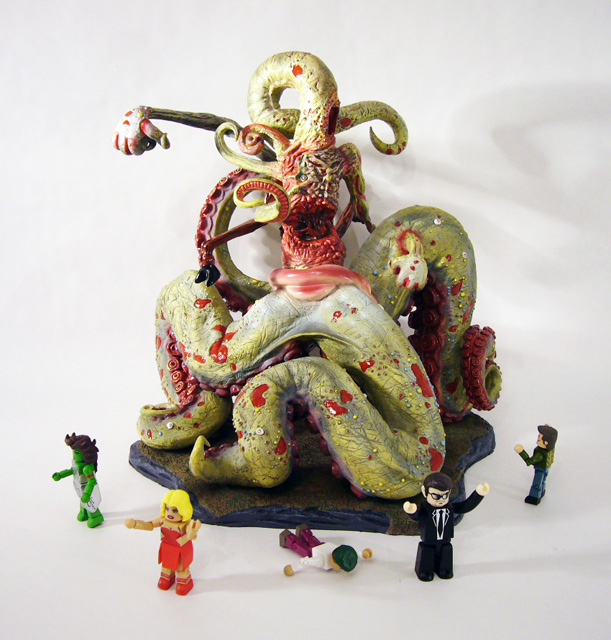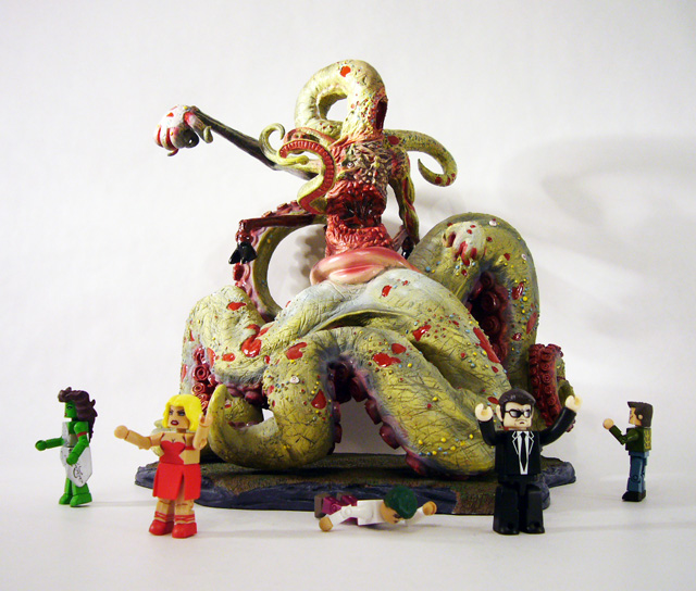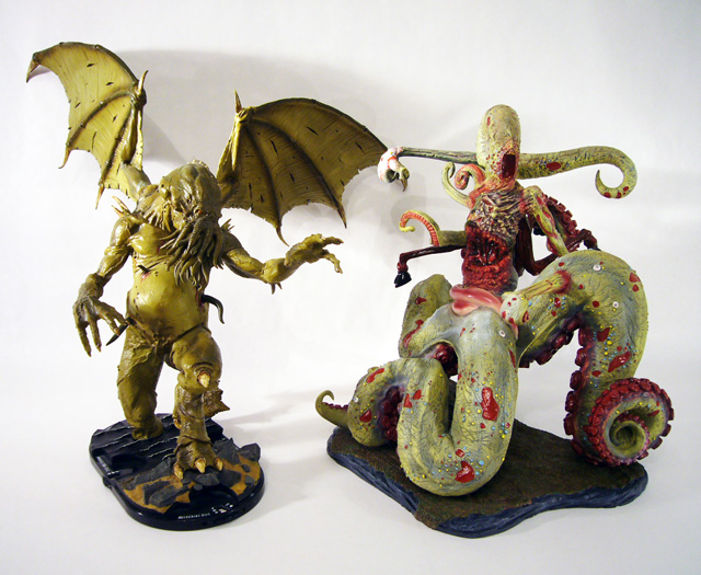 H. P. Lovecraft’s macabre Outer Gods and Great Old Ones are some of the most lasting and iconic fictional monsters of all time. Writing between 1917 and 1935, Lovecraft created the genre of “cosmic horror” in which mankind is but a tiny element in a universe full of powerful alien entities. Among those are the Outer Gods, alien life forms of incomprehensible power; indeed, just to witness the slightest aspect of their reality is to go completely insane. Thankfully, for the most part humanity is far too inconsequential for the Outer Gods to take notice, but when they do... watch out. Of all the malevolent gods, the one that interacts the most with mankind is Nyarlathotep, the “Crawling Chaos.” Appearing first in the 1920 poem “Nyarlathotep,” the god takes many forms including a Pharaoh-like man and a variety of amorphous shapes incomprehensible to the human mind. Later artists would create an iconic version with a tentacle where a head should be, and combined elements of other gods into the form of Nyarlathotep, their messenger.