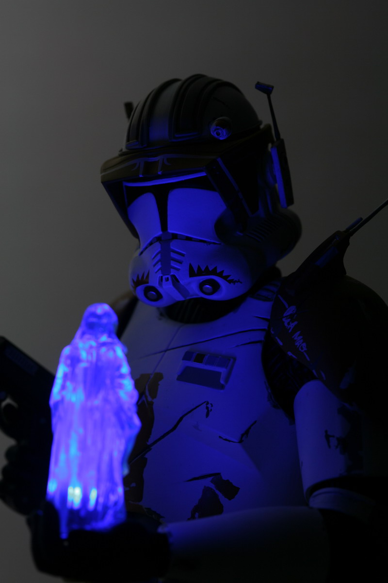 The recently resurrected line of Star Wars ARTFX Statues (bringing the heroes and villains of the Star Wars universe to life in dynamic 1/7th scale) continues with one of the most popular characters from the prequel films. A leader of clone troopers and friend to Obi-Wan Kenobi until Order 66, here comes Episode III: Revenge Of The Sith: COmmander Cody. Paying homage to Cody's switch in allegiance, his ARTFX Statue comes with two unique display modes. The first depicts the commander before Order 66, standing triumphant on the field of battle with his blaster at the ready. Cody scans the scene before him looking for any final opponents while dangling from his left hand are the remains of the last one: the severed head of a battle droid! If you prefer the commander working for the dark side, swap out parts to portray him in the final moment before turning on Obi-Wan. This Cody looks down at a hologram of Emperor Palpatine that glows with a bright LED light. He even wears the Jedi’s lightsaber on his belt as the character did in that specific scene.