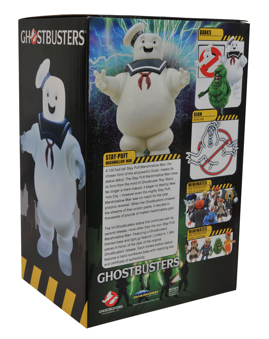 Diamond Select Toys announces the upcoming release of two new GHOSTBUSTERS statues. The first is 100 feet of angry marshmallow shrunk down to a more manageable collectible size of 7-inches. The Ghostbusters Stay-Puft Statue will include a light-up feature to add a pleasing glow to your collection at night. Look it this July priced at SRP of $69.99. Check out the new packaged photos in our gallery below.