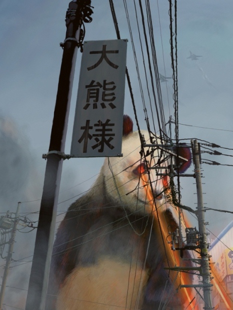 Following the "Characters in Repose" section, a "Characters in Action" section helps ensure readers gain exposure to the impressive action-oriented work of such artists as Japan's Simon Bull, who's piece, News flash: Giant Panda destroys Tokyo (below) received the "Excellence" title.