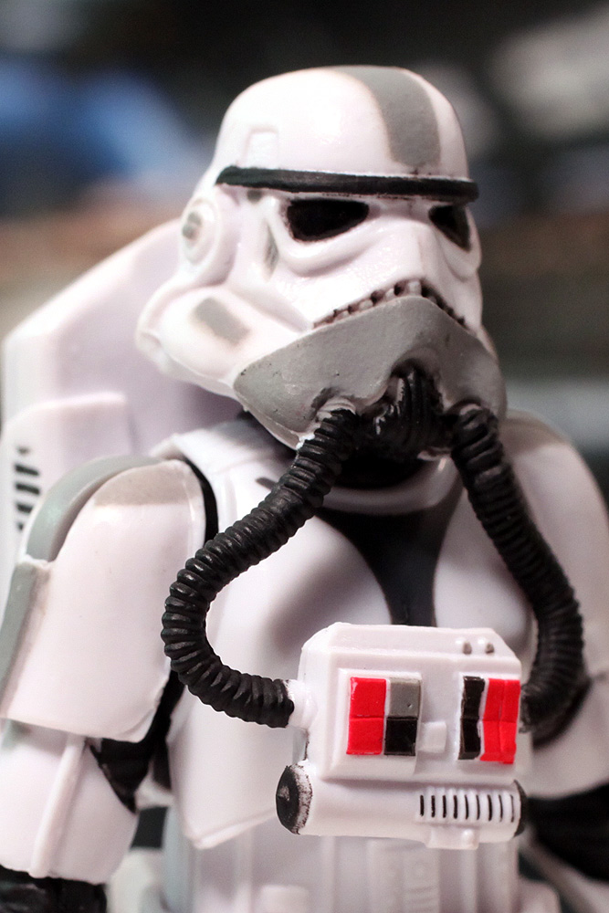 On the accessory side, Darth Vader has his lightsaber and an all new Hover Platform. This large base also has a control panel that can be plugged into it and has pegs for Vader. Boba Fett has a removable jet pack (it’s too removable actually and never quite stays on) and his blaster weapon. The Sky Troopers come with removable jetpacks and two different blasters each.