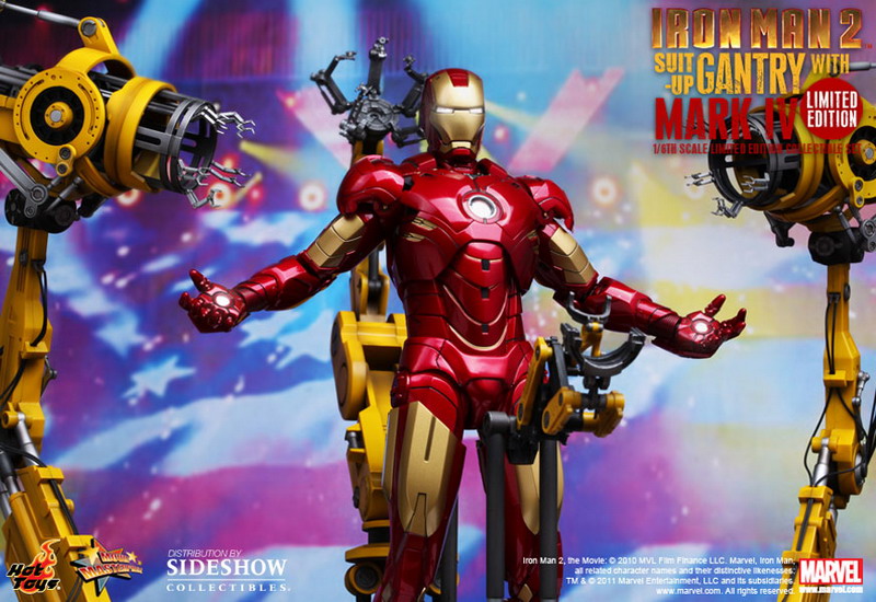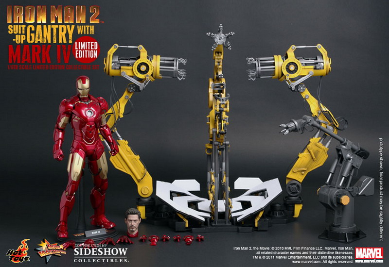 The Suit-Up Gantry with Iron Man Mark IV 12 inch Figure Set is now available for pre-order through Sideshow Collectibles priced at $499.99 and scheduled to arrive 1st quarter 2012. FLEXPay is available as a payment option.