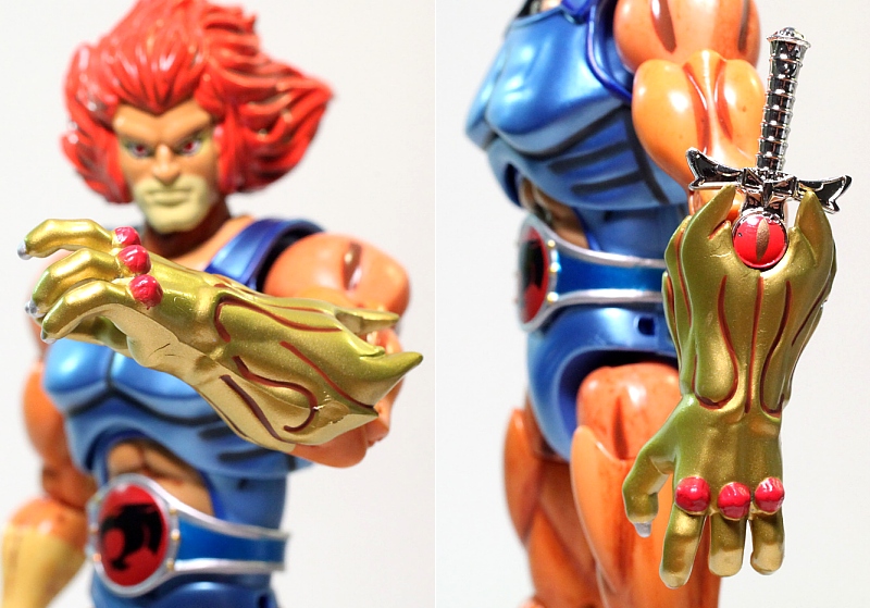 While Lion-O doesn't sport any breakthrough articulation, what he does feature is very well executed - adding up to at least thirty useful joints on my count. Important to highlight are the feet joints that allow him to stand firmly with both paws planted flat on the ground and also wrist joints for better swordsmanship. If wearing the Claw Shield gauntlet, wrist articulation is virtually eliminated on the left hand.