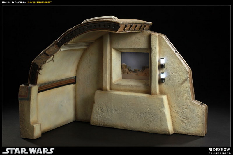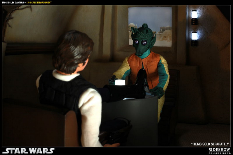 Sideshow reveals their latest Star Wars 12-inch action figure environment: Mos Eisley – Chalmun's Cantina. This piece will be available for pre-order through the Sideshow Newsletter on Thursday, August 18th, 2011, which is typically published between 2PM and 3PM (Pacific Time).