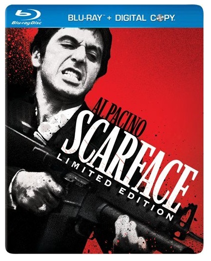 As for special features, this new limited edition steelbook version features a wide variety of special features, including two discs, one which features the 1983 film in high definition and a slew of bonus material and a second disc featuring the original 1932 Scarface film, ten exclusive Grand Prize-winning design art cards, and an access code for a digital copy of the film.