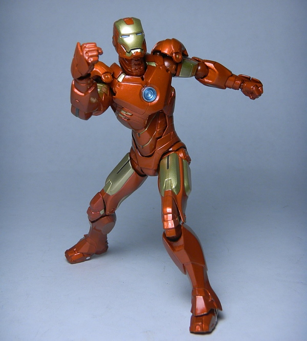 The color application on the figure is the best I have seen so far on an Iron Man action figure. The metallic red and shiny gold parts of the armor. The shine of the paint work on this figure makes this Revoltech Iron Man stand out significantly next to the Hasbro and Diamond figures.