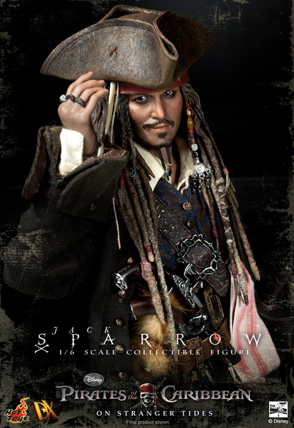 We've been really looking forward to the new Hot Toys Pirates of the Caribbean: On Stranger Tides Captain Jack Sparrow since it was first announced (see the full details HERE). Today, the company has unveiled Jack's second interchangeable face, an uncanny representation of Johnny Depp in all his pirate glory. The smirking face took longer to perfect, but has now been approved by the licensor and talent!