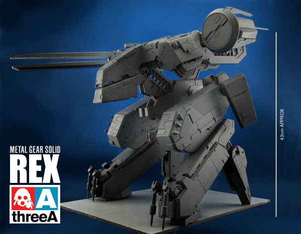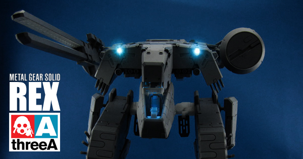 3A Toys, best known for their Ashley Wood designed action figures, is taking on a licensed property: the hit video game Metal Gear Solid. The game series, which Ashley Wood has provided artwork for in the past, will be represented by one of the Metal Gears: REX. Pre-orders for this 16" tall mech will begin in January; pricing to be determined. Pictured are new unpainted production shots showing what appears to be a cool light-up function.