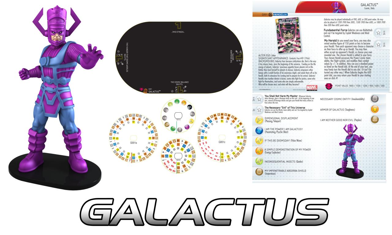 It’s inevitable that people will make comparisons between G001 and the Galactus figures that have come before, not to mention the G-on-G battles that are sure to take place as players put them through their paces. While you can say that “they don’t build ‘em like they used to,” G001 is sure to please a lot of people with more variation in the appearance of powers, interesting U-shaped dial patterns, options and flexibility with Perplex, and of course the brilliant Herald mechanic! Not only that, but thanks to the multiple dials and the way they can combine this is a Galactus you can use in battles ranging from the standard 300 points to the biggest epic fights between colossals at 1800.