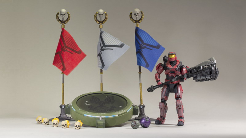 * Team Objectives - first-ever Halo accessory pack includes a team red Spartan Mark V with Assault Rifle, a Red Flag with detachable base, Blue Flag with detachable base, UNSC Assault Bomb, Covenant Assault Bomb, and a Capture Plate.