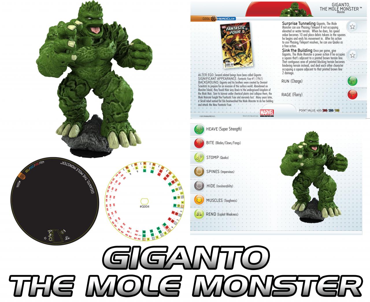 Joining Master Mold in the Galactic Guardians colossal lineup is another classic Marvel villain, Giganto the Mole Monster! Created by (you guessed it) Lee and Kirby, the giant beast first appeared in the pages of Fantastic Four in 1961. The result of Deviant science gone horribly wrong, the various monsters called Giganto were used to attack the surface world and thus came into conflict with Earth’s mightiest heroes including more than one incarnation of the Fantastic Four, the X-Men, Avengers, and others. Mole Man and the Moloids have appeared in HeroClix since way back in 2003’s Critical Mass expansion, and with Giganto they get a ‘colossal’ boost!