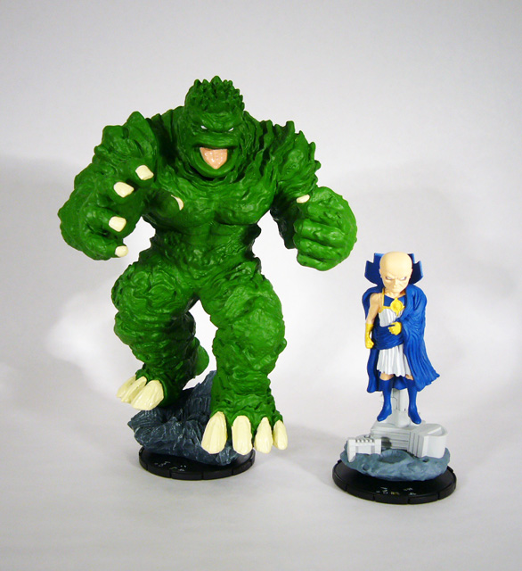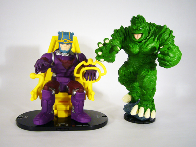 With 2012 comes a whole new world of HeroClix. Last year began a series of Marvel expansions designed to tell a story across most of the next year (and coinciding with monthly Infinity Gauntlet tournaments). First came The Incredible Hulk set complete with several different versions of everyone’s favorite gamma-powered hero, his allies, and enemies. But in April, things will get even bigger. The next expansion is Galactic Guardians featuring the “cosmic” characters and storylines of the Marvel universe. In addition to the regular-sized five figure boosters (and a Fast Forces pack, single booster Primer set, and an in-store marquee figure), Guardians will also feature the return of the Super Booster. First offered with 2011’s Giant-Size X-Men expansion, Super Boosters are massive blind booster boxes containing “colossal” figures. While the GSX versions held a variety of 2x2 square based figures, these new ones will feature a mix of those and some enormous 6x3 figures, all of which are both fun to play and perfect for displaying along with your Marvel toys and statues. We first debuted Galactus and Uatu the Watcher (read our first look HERE), and today we’re revealing two more: Master Mold and Giganto, the Mole Monster!
