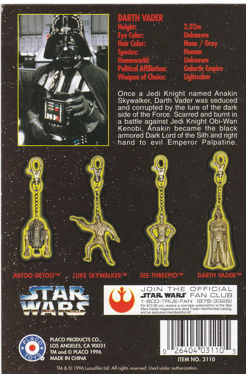 CARD BACK: Placo Toys STAR WARS KEYCHAINS (1996)