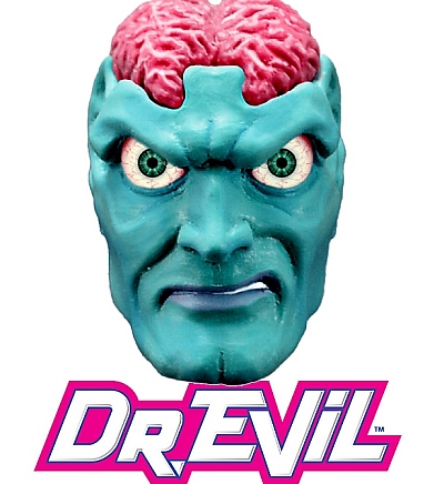 Come this summer, collector's will have three new ways to expand their Captain Action experience with new Thor and Loki costume sets (which continue the Build-A-Hawkeye project with new pieces of the uniform), as well as a true nemesis to do battle with: Dr. Evil. This menacing alien foe will come with cloth costume, medallion, boots, Dr. Tracy mask, laser gun, flesh-colored neck piece to conceal blue skin, and bonus 11"X17" blueprint diagram of hypnotic eye. Most exciting is that the Dr. Evil figure will feature three different interchangeable brains: Battle Brain (with protruding spikes), Bionic Brain and Brilliant Brain (the pink matter pictured above). Variants/ exclusives are possible, a great glow-in-the-dark brain idea being tossed around. Speaking of exclusives, Round 2 is strongly considering WWII Captain America and Black Spider-Man costumes as Comic-Con exclusives.