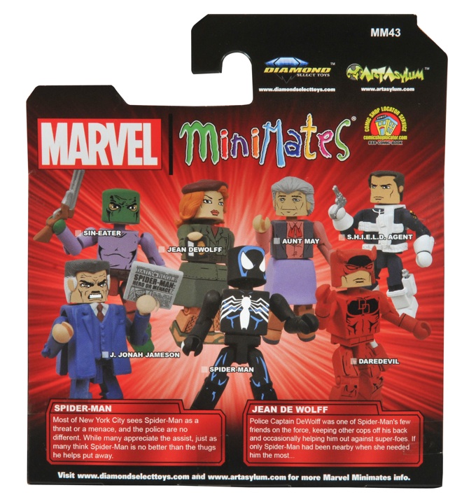 These will be the first toys ever made of Jean DeWolff and the Sin-Eater, who would return in different incarnations in later years. Also, these will be the first Minimates ever made of the standard SHIELD agent and Spider-Man's Aunt May. Marvel Minimates Series 43 hits comic shops and specialty stores this Wednesday.
