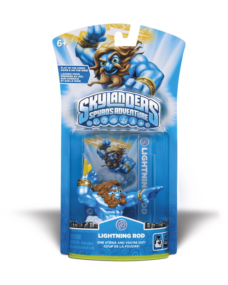 Lightning Rod once lived in the majestic Cloud Kingdom, where his countless acts of heroism along with his winning smile and electric physique made him the most famous storm giant in the realm. He was a true celebrity, and the palace halls were littered with statues of the chiseled hero. But all the praise and admiration could never quite satisfy Rod, who yearned for something more. As luck would have it, he met an adventurous young dragon named Spyro, who told him fantastic stories of faraway places and dangerous adventures. Rod was spellbound, and he set off with Spyro to seek an audience with Eon to join the Skylanders.