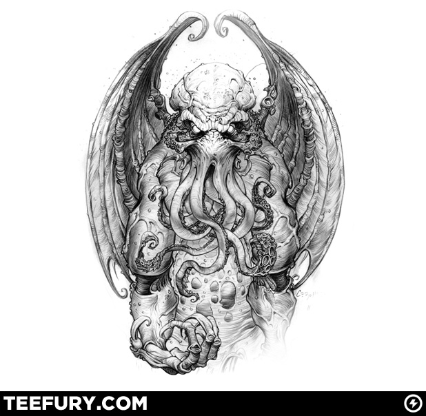 Today's original TeeFury.com t-shirt design is actually a pretty serious one for a change. Called "God Of Cosmic Horror," the shirt shows off artist creepyseb's cool take on H.P.Lovecraft's Cthulhu.