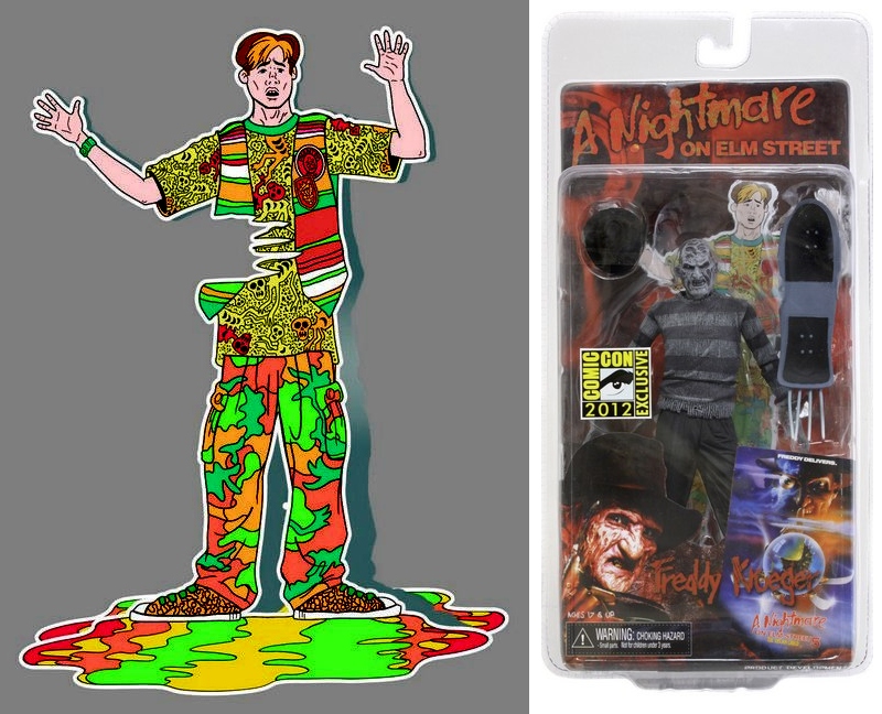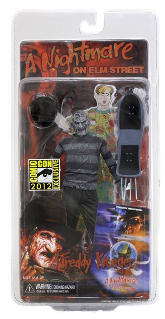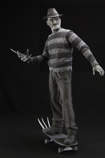B&W Comic Book Freddy comes with a skateboard and a removable hat. Also included is the icing on the cake: a foldable, sliceable paper recreation of Mark Gray! Get yours during Comic-Con at NECA's booth #3145 priced at $25.