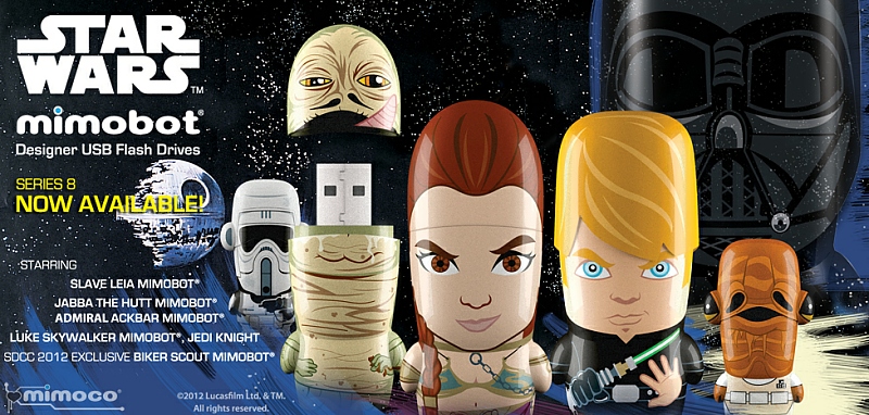 Mimoco announces the release of Star Wars MIMOBOT Series 8 featuring iconic characters from Episode VI: Return of the Jedi. The eighth series in the Star Wars MIMOBOT collection includes Jabba the Hutt, Slave Leia, Jedi Luke, Admiral Ackbar, and Biker Scout - a joint 2012 San Diego Comic-Con and Star Wars Celebration VI exclusive - all sporting classic stylized MIMOBOT designs.