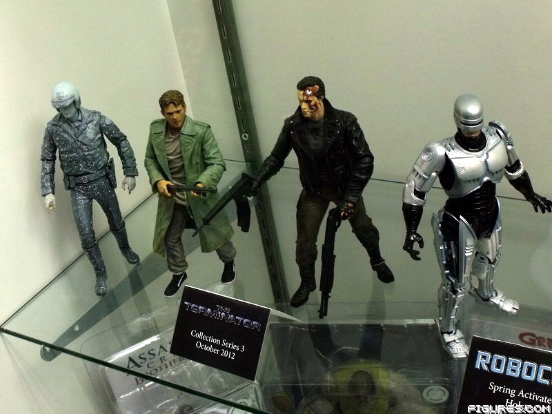 The latest Terminator assortment was on display at NECA's booth at this year's San Diego Comic-Con. The upcoming assortment will consist of a new frozen T-1000, Kyle Reese in civilian outfit (trench coat and jeans) and a Battle Damaged T-800 from Terminator. The new assortment is schedules for release later this fall.