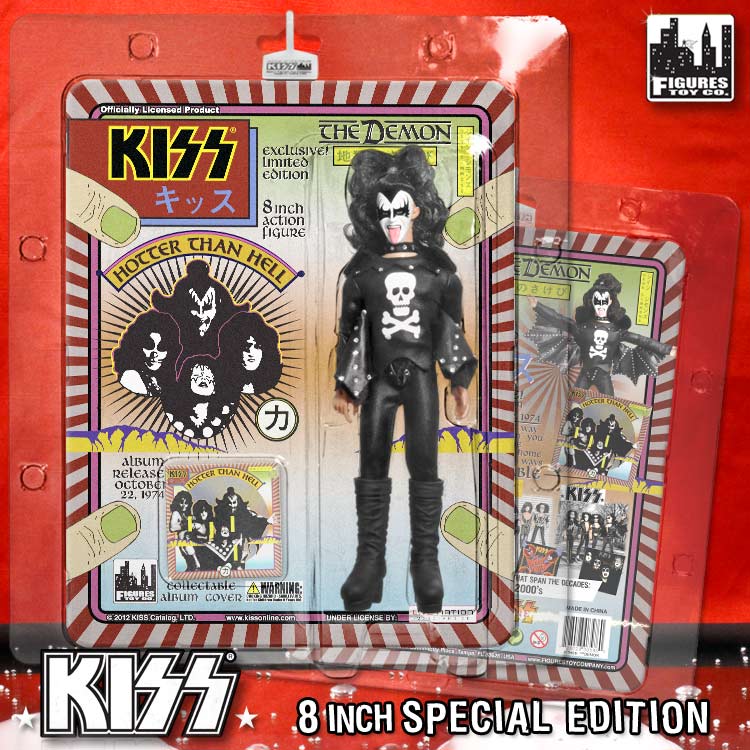 Figures Toy Company CFO Anthony Balasco states, "I never understood why 8 inch KISS action figures were not produced back in the 1970's when The Mego Toy Company had already released the 12 inch versions. Our second release will have the retro look from the 1970's but updated with more detailed costumes. Future releases will cover all time periods in KISS's 40 year musical career from 1972 to 2012".