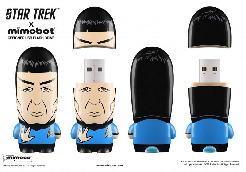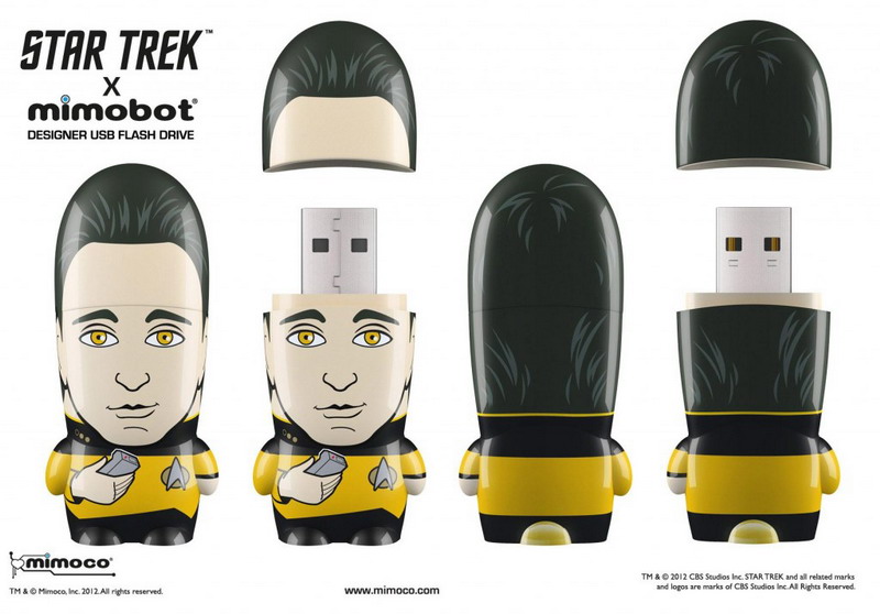 Mimoco, creator of the MIMOBOT line of designer USB flash drives and MIMOMICRO card readers, sets out to explore new galaxies with the release of the Star Trek X MIMOBOT Series. Under license by CBS Consumer Products, the first collection features four Star Trek favorites in classic MIMOBOT style and is available with up to 64GB of data storage. The line comes preloaded with exclusive Star Trek Mimory content including never-before-seen material from the Star Trek: The Next Generation Blu-ray release, vintage toy commercials, and comics. The line also comes with the MimoDesk personalization suite, which includes Star Trek-themed wallpapers, icons and avatars. It also comes equipped with MimoByte sound software powered with an offering of iconic sounds and character dialogue that play each time a Star Trek MIMOBOT is inserted or ejected from one's computer.
