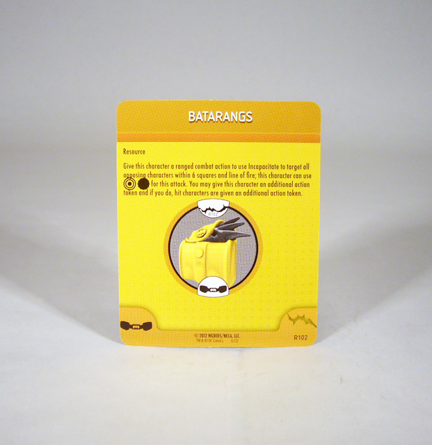 Mounted on the Utility Belt as a Resource it grants the wearer a special power; give the character a ranged combat action to use Incapacitate that targets EVERY opposing character within 6 squares and line of fire, AND Improved Targeting ignoring characters for that attack so you can target and hit even more enemies. And if that wasn’t cool enough, you can give the Batarang thrower a second token to apply two tokens to all hit characters as well. Now that’s an incapacitating attack!