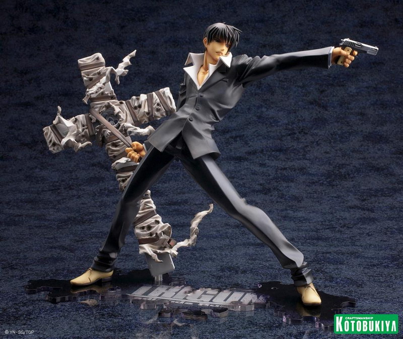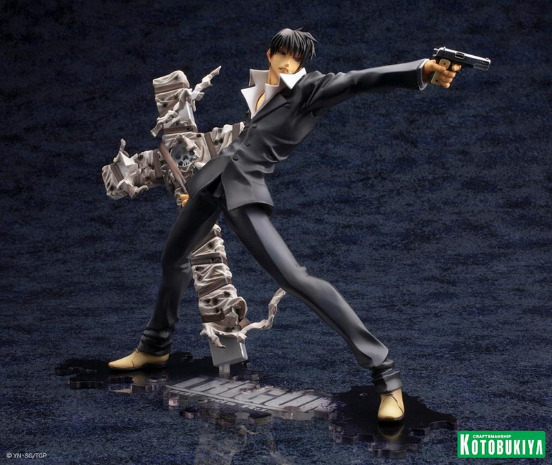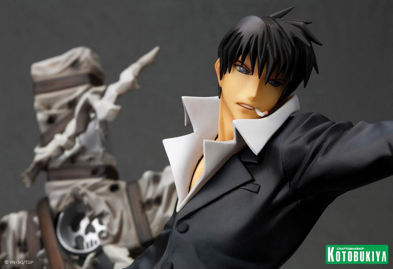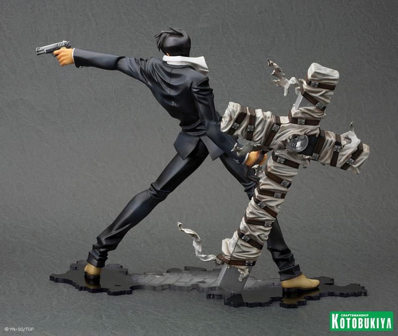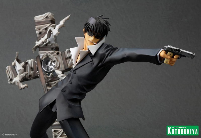 Joining Vash the Stampede (see HERE) in Kotobukiya's new Trigun: Badlands Rumble ARTFX J collection comes Nicholas D. Wolfwood. In scale with Vash at over7 ½ inches tall (1/8 scale) on an included display base, Wolfwood is set for release later in 2013 (Vash releases in February, so soon after that). Pretty nice, though I do wish he was sculpted firing Punisher (his huge cross-shaped gun).