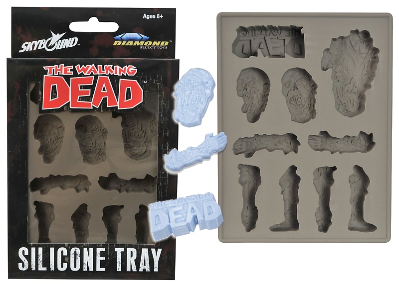 Looking to add a little life to the party? Is your event feeling a little dead? Then jazz up that drink or that dessert cart with this Walking Dead silicone tray! With this officially licensed tray, you can mold ice cubes, gelatin and chocolate in the shape of zombie heads, limbs and even the famous Walking Dead comic book logo! Trigger an outbreak -- of fun! SRP: $14.99