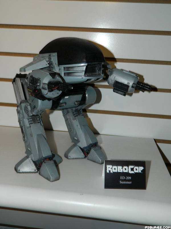 CORRECTION: In our original story, we reported that ED-209 will be slightly smaller than his on screen counterpart. This was misinterpreted information from Toy Fair. The ED-209 that was on display at the show was not quite a 2-Up prototype, but it was still slightly larger than what the final figure should be. The production figure - which will be approximately 10" tall - will be 100% in scale with NECA's Robocop action figure when complete. Sorry for the confusion.